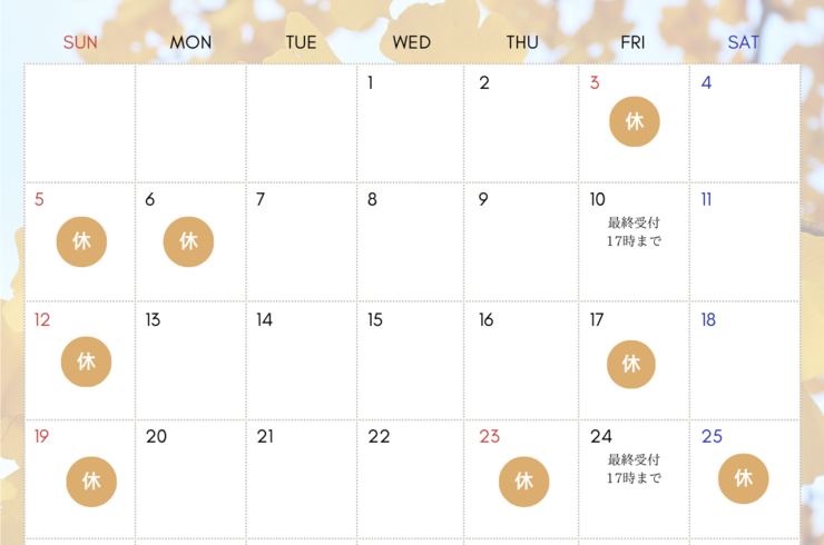 | 定休日 | 日曜日・祝日 |